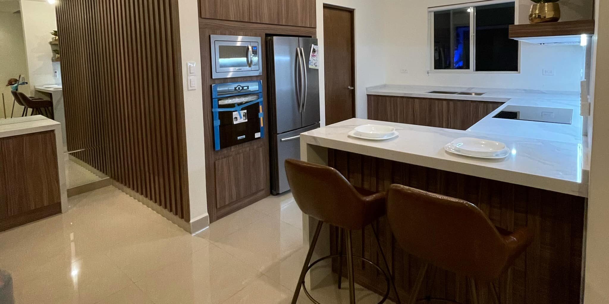 cocina, muro decorativo lambrin y bufetero