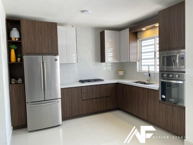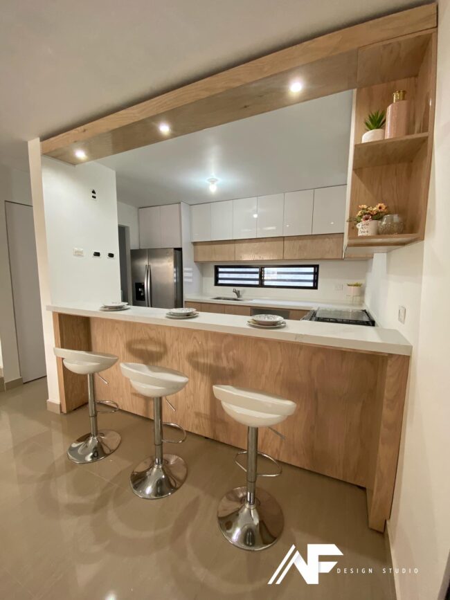 Diseño moderno y minimalista Color Blanco Laricina Siberia Cubierta en Granito negro San Gabriel Herrajes cierre suave marca BlumIsla con área de guardadoEspacios para decoración Somos diseñadores y Fabricantes! Cada proyecto es personalizado y creado acorde al espacio, gusto, necesidad y estilo de vida de nuestros clientes Contáctanos para tu cotización sin compromiso