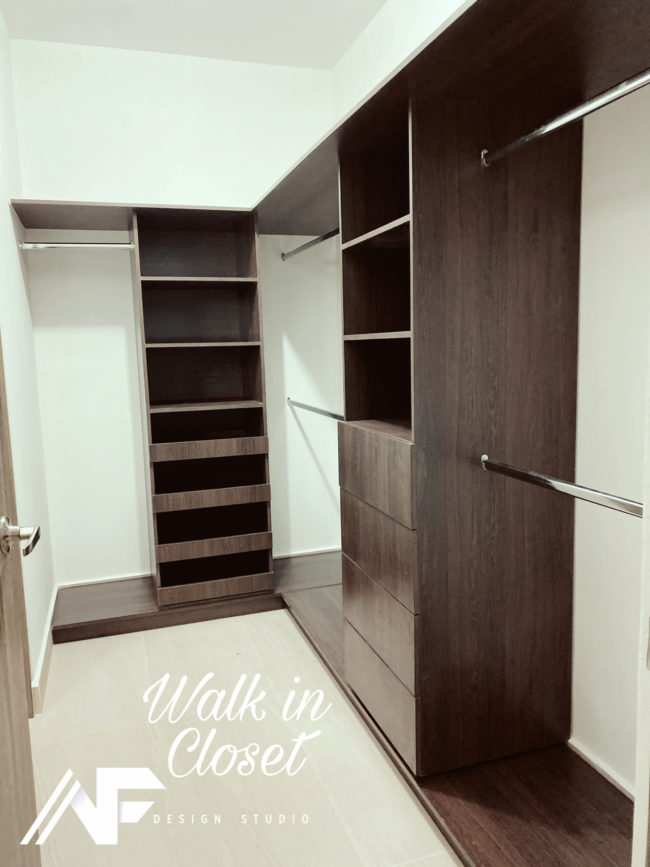 Closet de madera de pino, con MDF laminado.